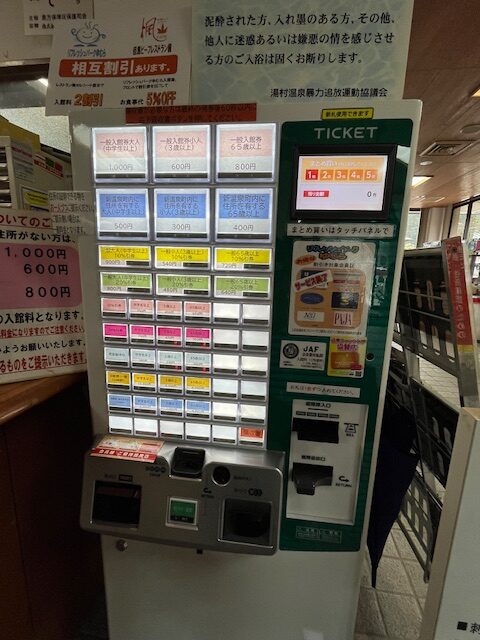 入浴料金は1,000円でした。券売機で入浴券を購入し、受付に渡します。