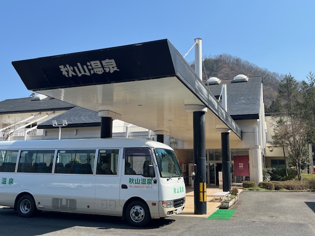 ちょうどエントランスで、上野原駅への無料送迎バスが出発待ちをしていました。