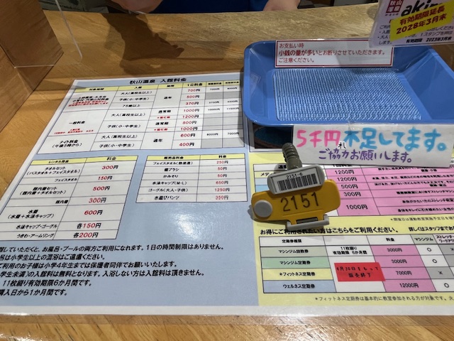 入浴料金の支払いは入館時です。