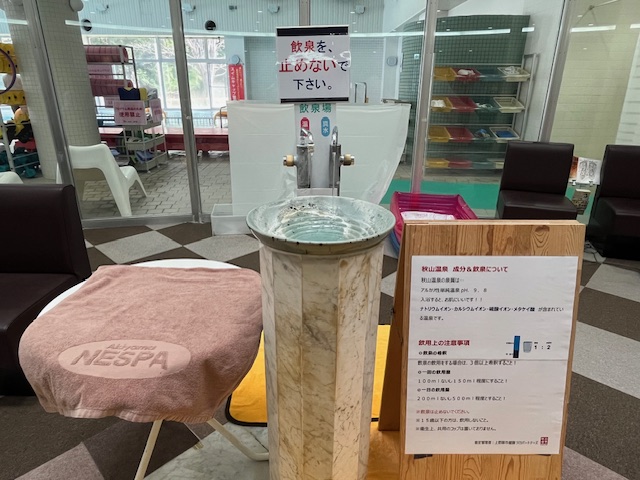 飲泉所もありました。共用コップなどはありませんが、約36℃と熱くはないため、手ですくって飲むことができます。