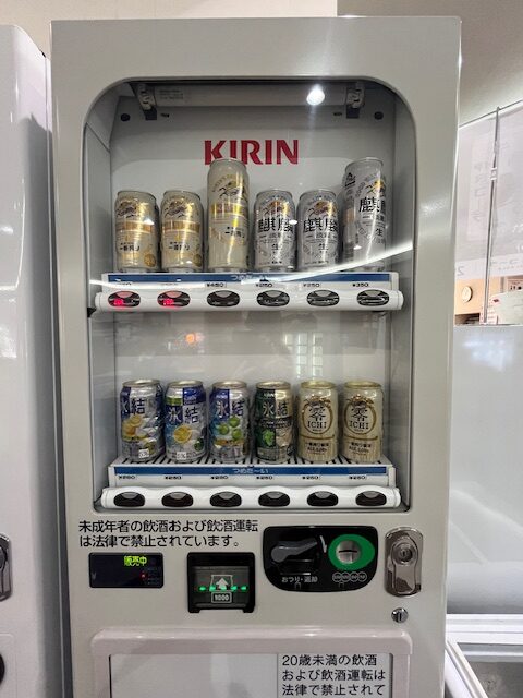 館内の自動販売機で缶ビールを購入できます。また2階食事処で生ビール・瓶ビールを販売しています。