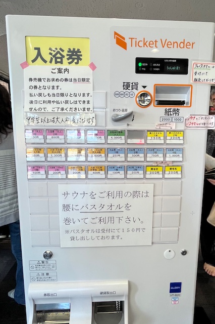入浴料金は400円でした。券売機で入浴券を購入し、受付に渡します。