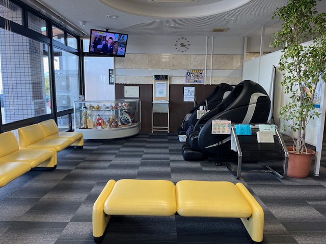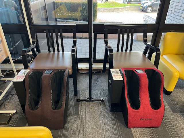 ・無料休憩スペースにマッサージチェアや足マッサージャーがありました。