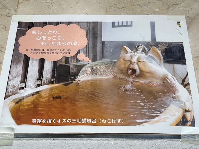 浴室は日替わりで男女入替制。今日の女湯は「幸運を招くオスの三毛猫風呂」がある方でした。