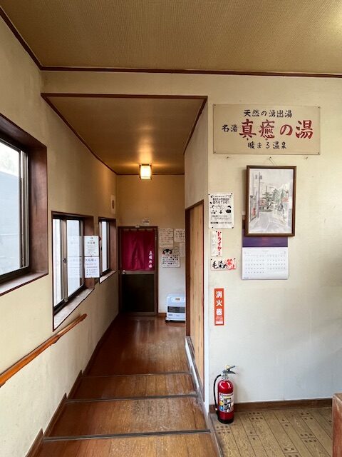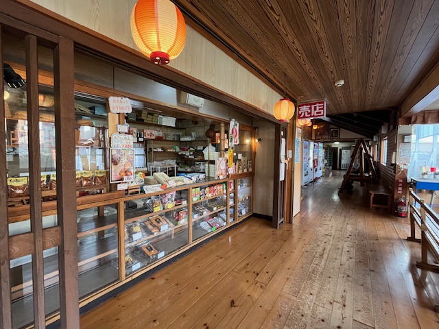 泉質や適応症が書かれた高札(立て札)や、大浴場へ向かう廊下途中の売店がエモい。