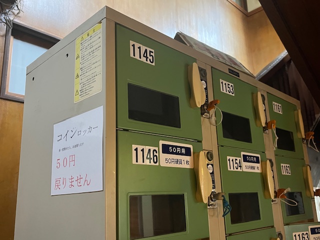 貴重品は持ち込まないか、50円を支払って貴重品ロッカーを利用しましょう。