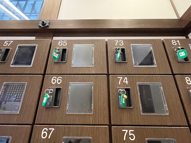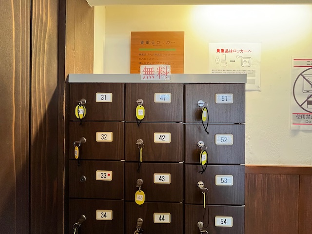 なお受付横にも貴重品ロッカー(カギ付コインレス)があります。