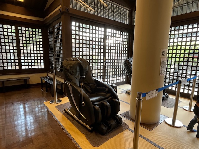 ・無料休憩スペースにマッサージチェアが設置されていました。
