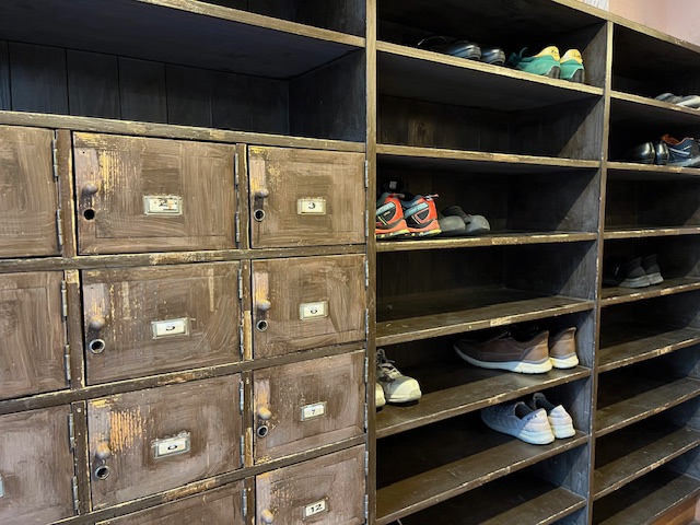 靴収納は平置きの靴棚とカギ付ロッカー(10円ノーリターン式)が設置されています。