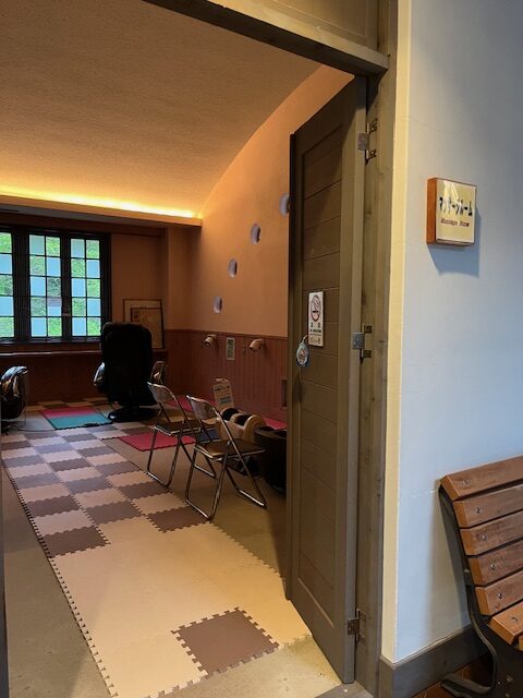 ・上層階にマッサージルームがあり、マッサージチェア、足マッサージャーがあります。