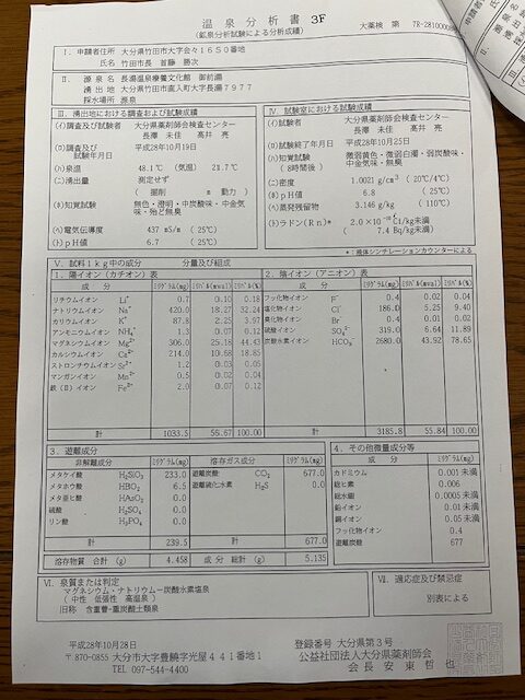 1階、3階、冷泉、全ての分析書がホチキス留めされているコピーをいただけました。