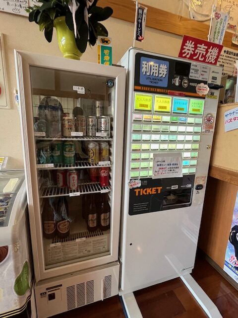 館内の受付(売店)で缶ビールを購入できます。また受付券売機で生ビールも購入できます。