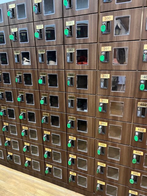 靴はカギ付ロッカー(コインレス)利用なので、小銭は不要です。