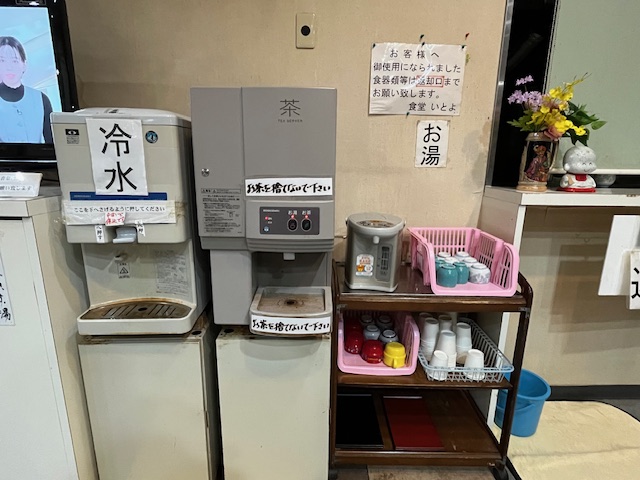 休憩所に給茶機・冷水機がありました。