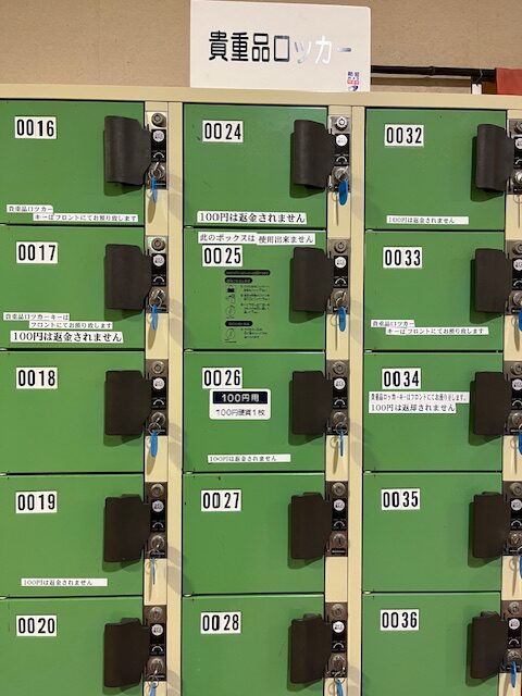 なお休憩スペースにも貴重品ロッカー(100円ノーリターン式)があります。