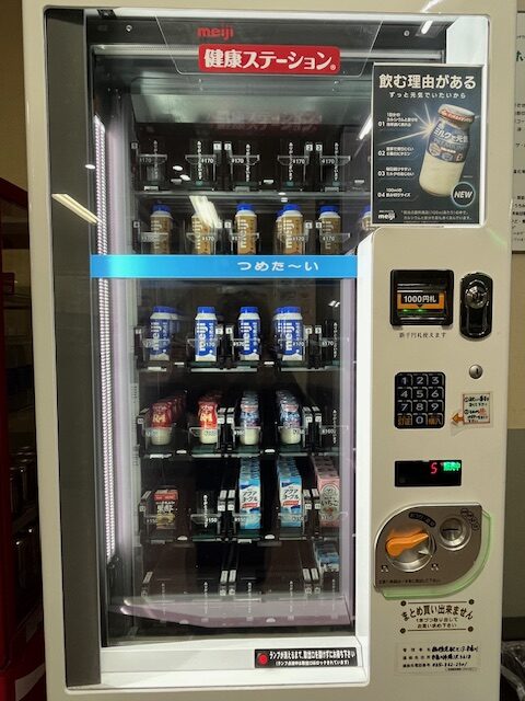 自動販売機で牛乳を購入できます。