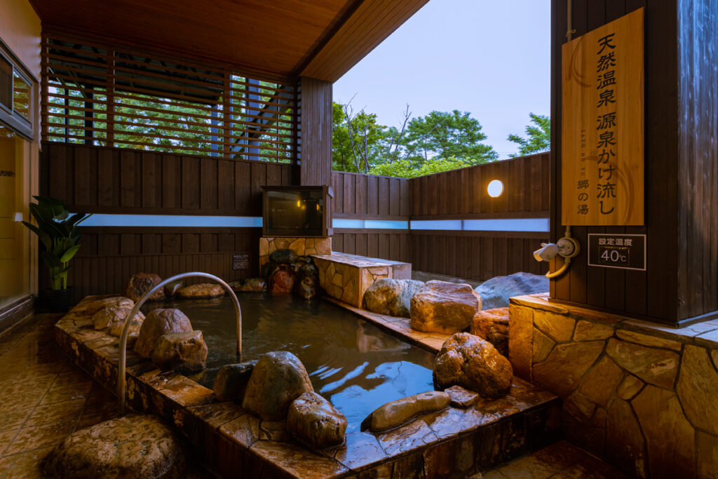 【露天】郷の湯(岩風呂:41.5℃)、座り湯、バレルサウナ、冷水桶風呂(11.5℃)