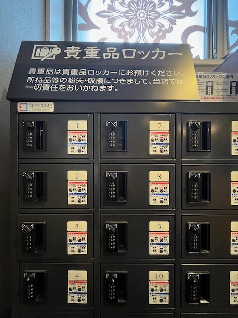 なお小さめの貴重品ロッカーが下足コーナー(ダイヤル式コインレス)や岩盤浴エリア(カギ付コインレス)にあります。