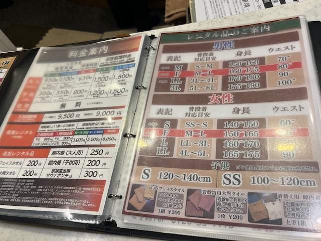 大人、土日祝・特別日1,100円というワンプライスで、入浴・岩盤浴に湯着・レンタルタオル(フェイスタオル・バスタオル・岩盤浴用大判バスタオル)フルセット付。