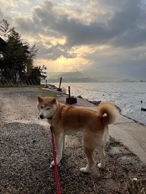 朝にはお天気もようやく回復し、東郷湖のほとりをおさんぽ。