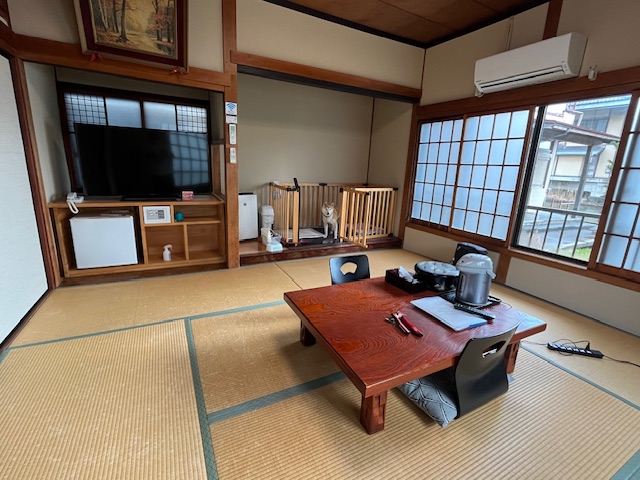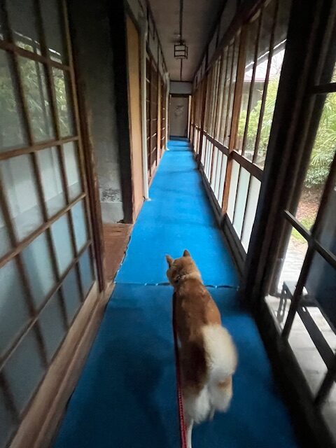 犬は足を拭けば、館内をリードで移動できます。廊下を歩くとミシミシ鳴り揺れるところが、長い歴史を感じさせます。