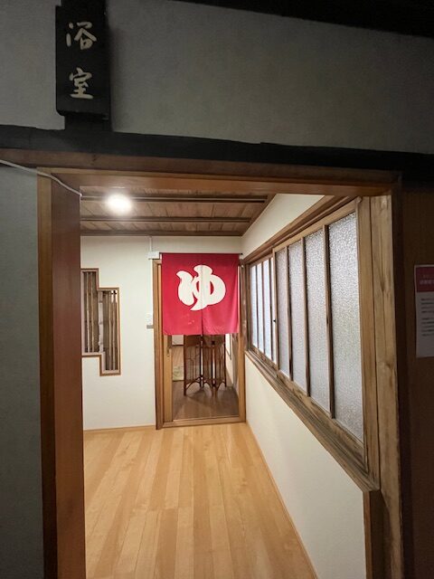 翌日明るくなってからわかったのですが、明治38年創業とのことで、外観も館内もレトロで重厚感があります。