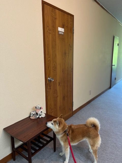ワンコの置き物がある「220号室」がペット同室専用部屋です。