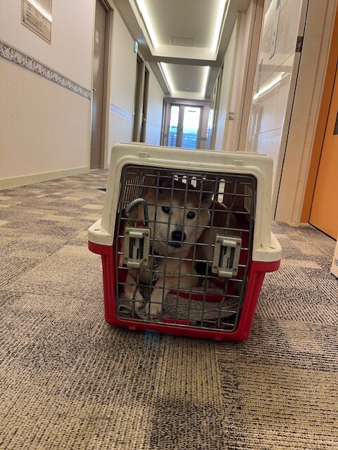 東横インでは、ペットの館内移動は頭までバッグ等に隠れた状態にする必要があります。