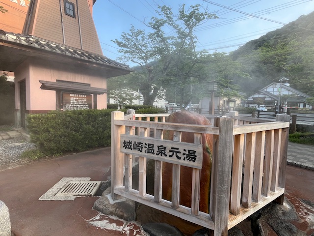 道を挟んだところに、城崎温泉の薬師源泉(元湯)があり、もうもうと湯気をたてていました。