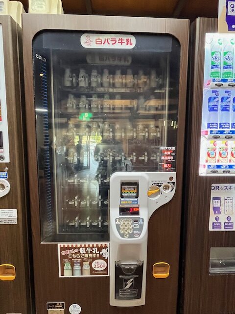 自動販売機で牛乳を購入できます。