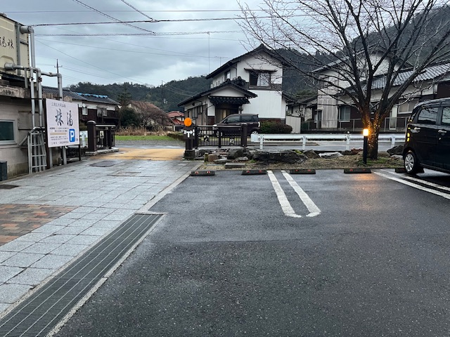 今回は株湯の無料駐車場(15台分)を利用しました。途中、道はとても狭いので、車の運転にはご注意ください。
