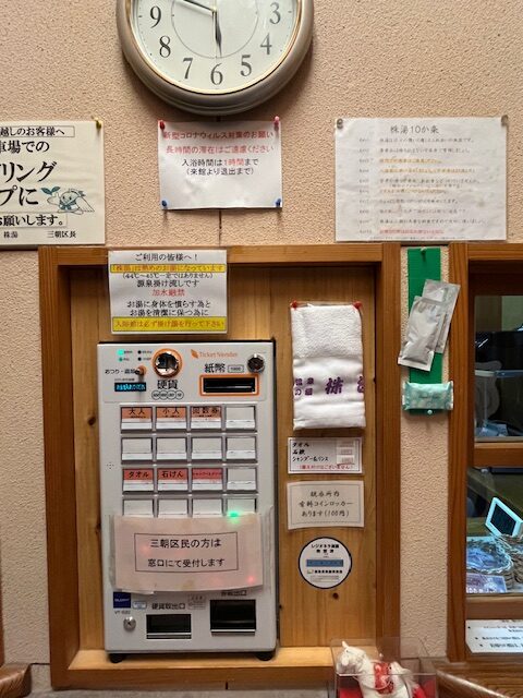 券売機で入浴券を購入し、受付に渡すと、管理人の方から入浴方法やルールについて説明していただけます。