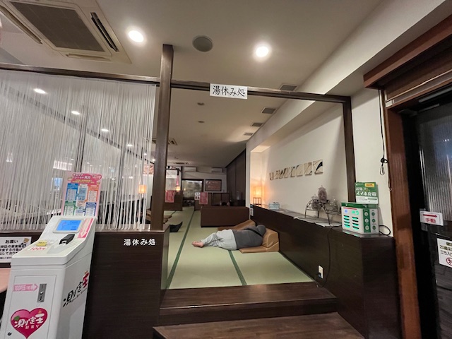 ・無料休憩所(畳コーナー)が1階にあります。ごろ寝クッションが共用8、女性専用5ほど用意されています。