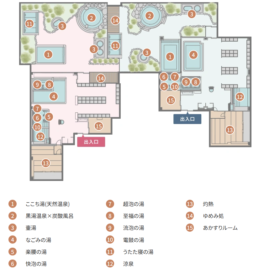 (案内図及び浴室内の写真は公式ホームページより拝借しました)