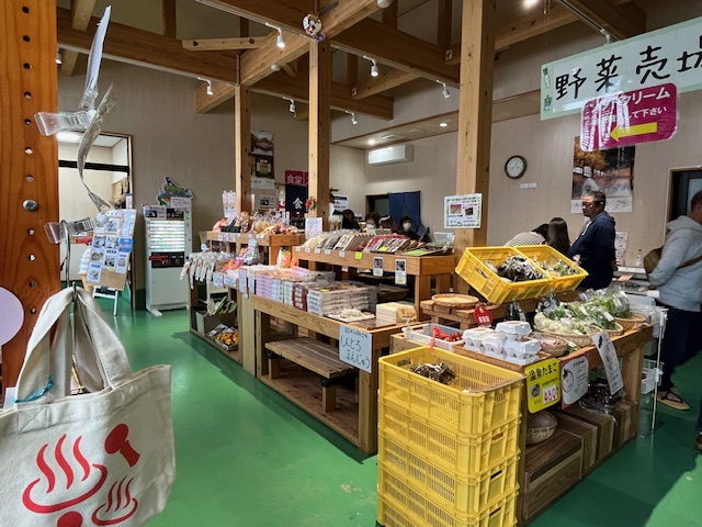 「ゆの駅しんとろ」では地元の農作物やお土産なども購入できます。