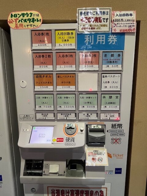 入浴料金は400円でした。券売機で入浴券を購入し、受付に渡します。