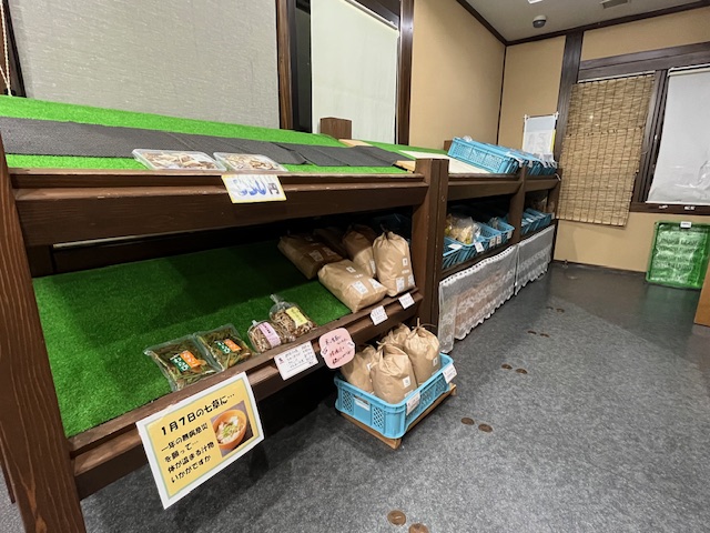 ・売店には温泉卵、お酒、お土産の他、地元の農産物も販売していました。