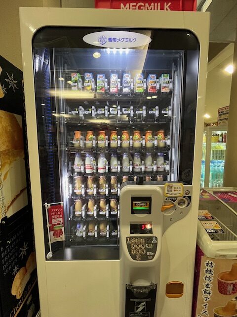 館内の自動販売機で牛乳を購入できます。