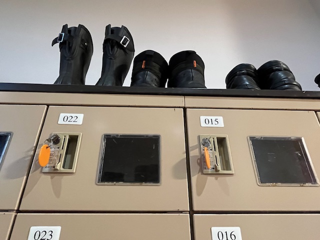 靴は靴箱ロッカー(100円リターン式)に収納します。