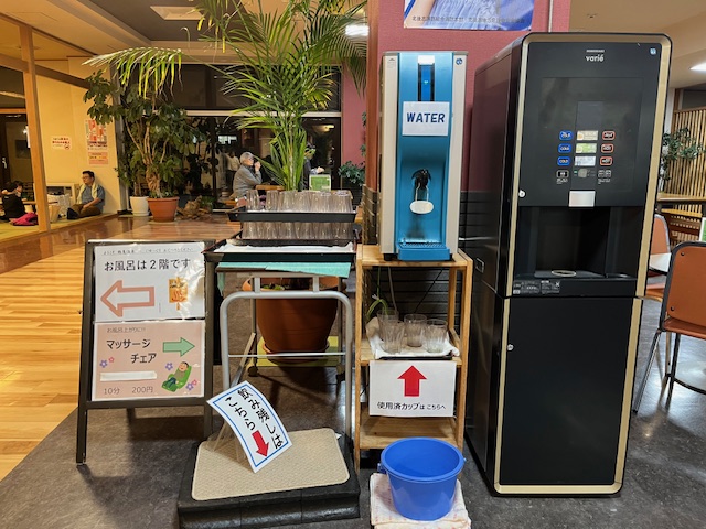休憩所にウォーターサーバー及び給茶機があります。