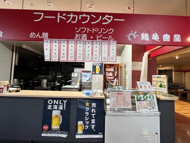 食事処(兼売店)で缶ビール・生ビール・牛乳を購入できます。
