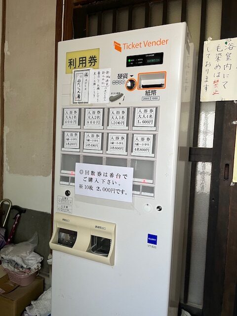 入浴料金は400円でした。券売機で入浴券を購入し、受付(番台)の入浴券入れに入れます。