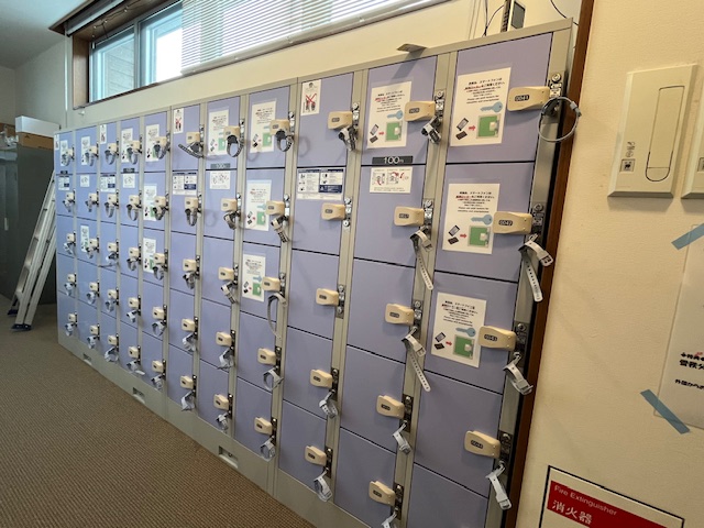 スマホ他、貴重品ロッカー使用に小銭が必要(100円)です。