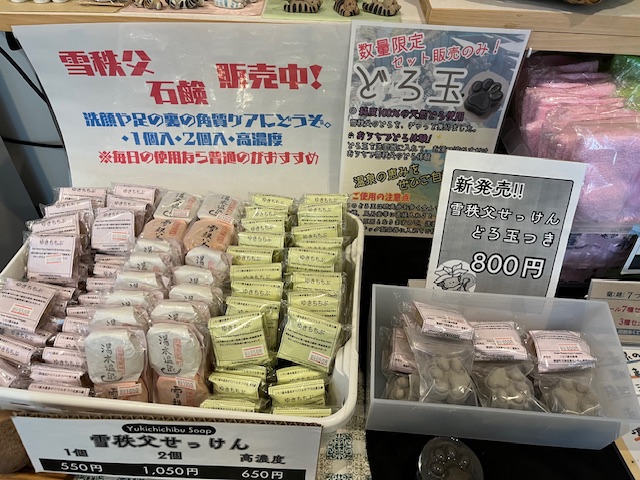 売店ではこの他、アイス、雪秩父グッズ(どろ玉、石鹸など)、地元の野菜・果物(蘭越米、メロンなど)を販売していました。
