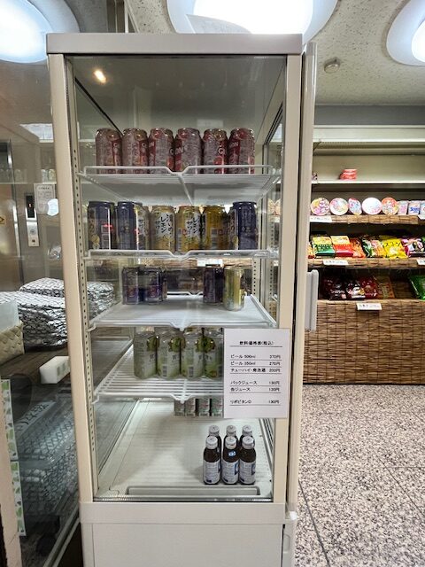 フロント横の売店で缶ビールを購入できます。