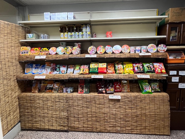 フロント横の売店でカップ麺やお菓子を販売しています。